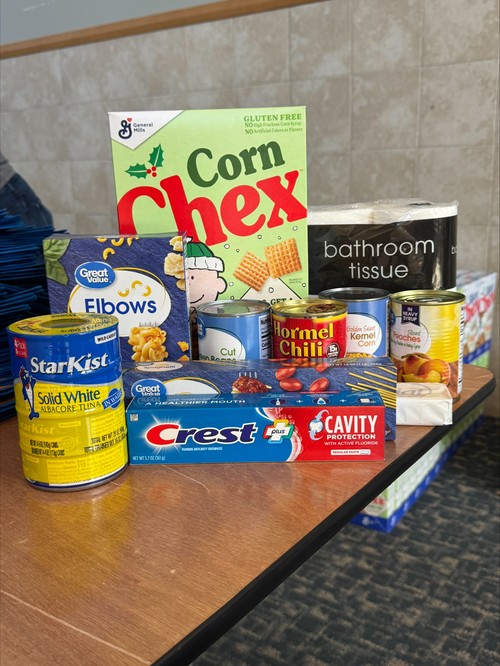 - Pantry staples (peanut butter, jelly, shelf-stable milk, cooking oil)